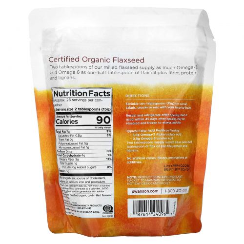 Описание товара Swanson, Органическое льняное семя, измельченное, 425 г (15 унций)