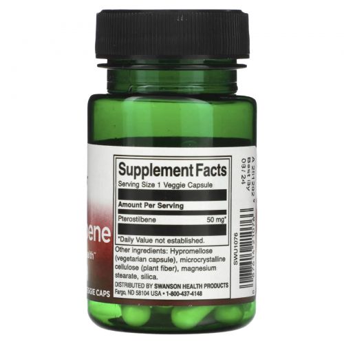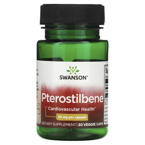 Описание товара Swanson, Птеростильбен, 50 мг, 30 вегетарианских капсул