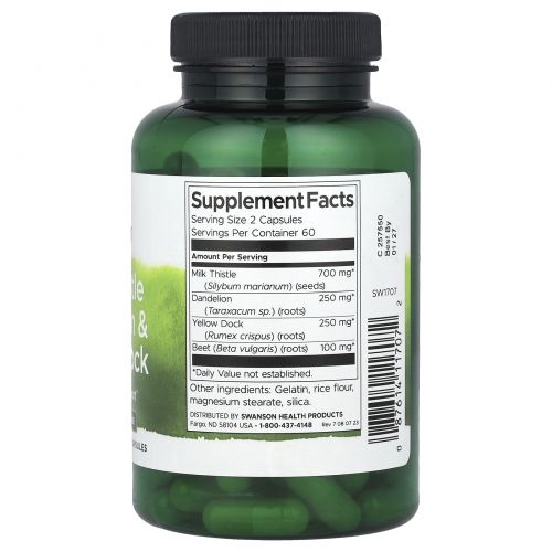 Описание товара Swanson, Расторопша, одуванчик и желтый док, 120 капсул