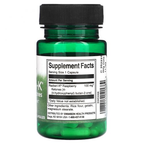 Описание товара Swanson, Razberi-K, кетоны малины, 100 мг, 60 капсул