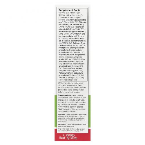 В качестве пищевой добавки смешайте содержимое одного стик-пакета с 480 мл (16 унциями) воды и тщательно перемешайте перед употреблением. Количество воды можно изменить по желанию, чтобы достичь желаемой интенсивности вкуса. Принимайте по мере необходимости, чтобы поддерживать водный баланс.