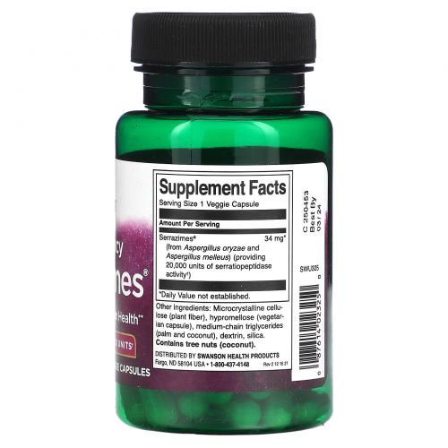 Описание товара Swanson, Высокоэффективный серразим, 34 мг, 60 растительных капсул