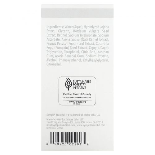 Описание товара Sympli Beautiful, Serumdipity, сыворотка для лица с витамином A (ретинолом), 30 мл (1 жидк. унция)