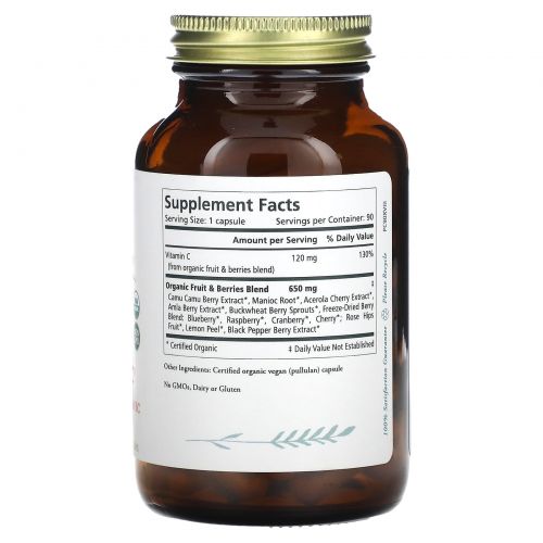 | Витамин С (из смеси органических фруктов и ягод) | 120 мг | 130% |