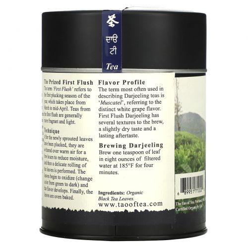 Описание товара The Tao of Tea, 100% органический Ароматный Индийский черный чай, первого сбора, Даржилинг 3.5 унции (100 г)