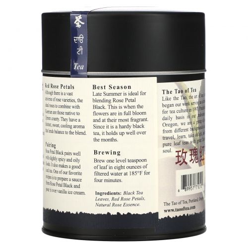 Описание товара The Tao of Tea, Черный чай с лепестками роз, черный чай со сладким цветочным ароматом, 4 унции (115 г)