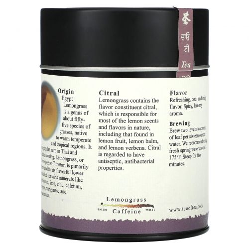 Описание товара The Tao of Tea, Органический травяной чай, лемонграсс, 85 г (3 унции)