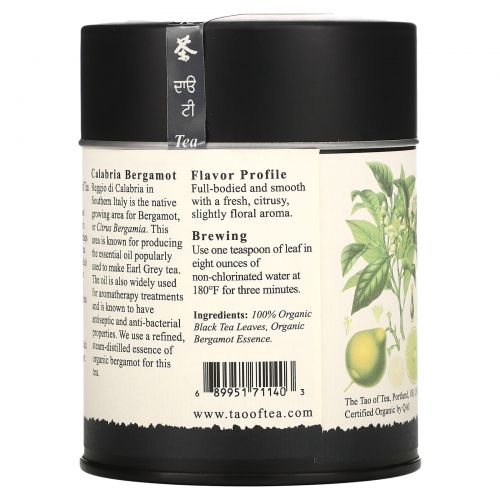 Описание товара The Tao of Tea, Сертифицированный органический черный чай с бергамотом, Граф Грей, 3.5 унций (100 г)