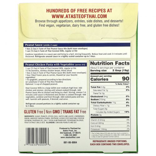 Описание товара A Taste Of Thai, Смесь арахисового соуса, 100 г (3,5 унции)