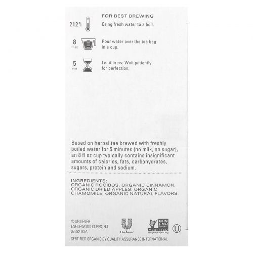 Описание товара Tazo Teas, Органическое яблоко, запеченное с корицей, Растительный чай без кофеина, 20 фильтр-пакетов, 1,76 унции (50 г)