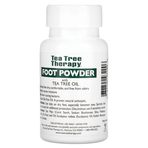 Описание товара Tea Tree Therapy, Антисептическая пудра для ног с маслом чайного дерева, без запаха, 85 г (3 унции)