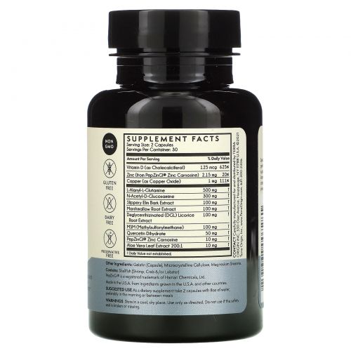 | Цинк (в виде карнозина цинка PepZinGI®) | 2,15 мг | 20% |