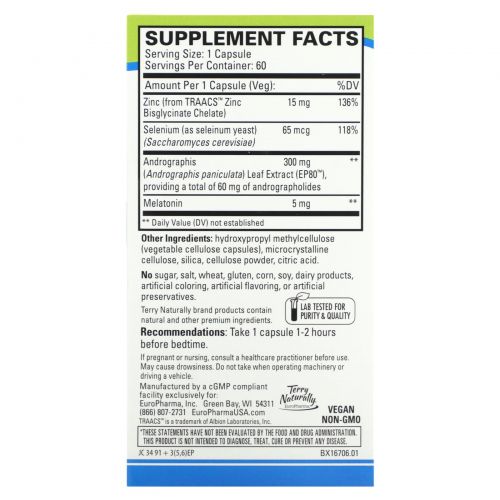 Описание товара Terry Naturally, Andrographis EP80, иммунитет, 60 капсул