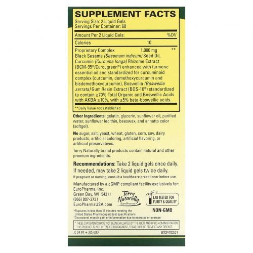 CuraMed® Acute Pain Relief† имеет уникальную систему доставки, которая объединяет современную науку с проверенной временем растительной мудростью. Эта новая революционная технология эмульгирует эффективные, клинически изученные ингредиенты с маслом семян черного кунжута для получения исключительных преимуществ! Эта новая формула является эксклюзивной для Terry Naturally®, что делает CuraMed Acute Pain Relief† поистине уникальным продуктом, который поможет вам вести активный образ жизни.
