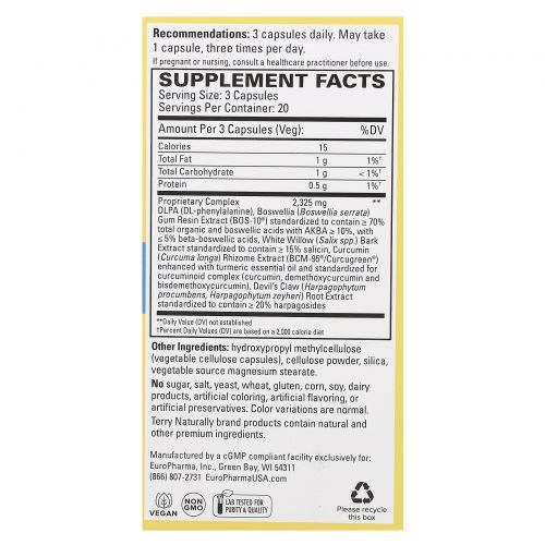 Terry Naturally, Curamin, средство для боли в пояснице, 60 капсул