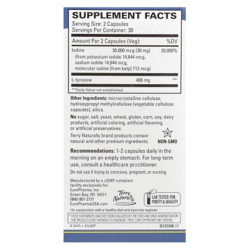 Описание товара Terry Naturally, добавка для щитовидной железы, 60 капсул