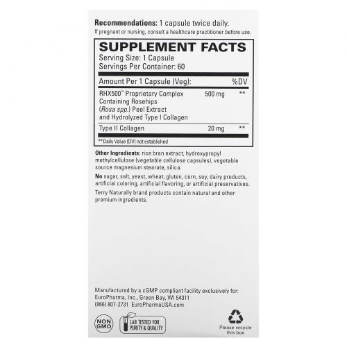 Terry Naturally, Комфорт для суставов с шиповником, 60 капсул