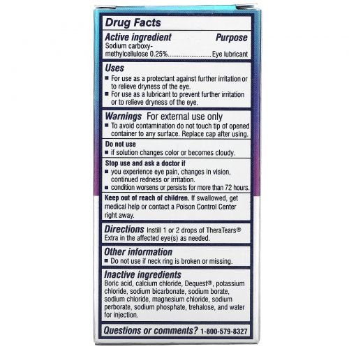 Описание товара TheraTears, Extra Dry Eye Therapy, глазные капли со смазкой, 15 мл (0,5 жидк. Унции)