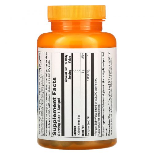 Описание товара Thompson, Масло семян тыквы, 1000 мг, 60 капсул