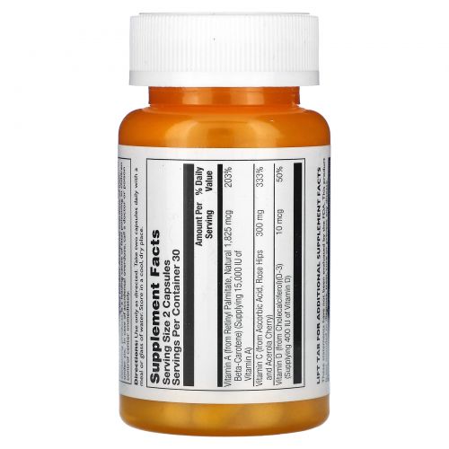 | Витамин A (из ретинилпальмитата и 67% в форме натурального бета-каротина) | 15 000 МЕ | 300% |