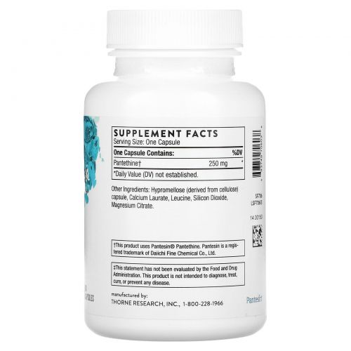 Описание товара Thorne Research, Пантетин, 60 растительных капсул