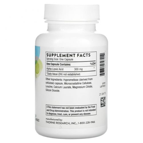 Описание товара Thorne Research, альфа-липоевая кислота, 60 капсул