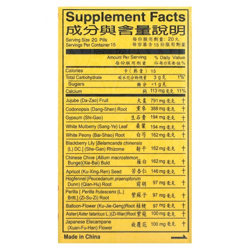 | Apricot (Ku-Xing-Ren) Seed | 146 mg | † |