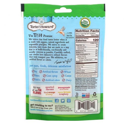 Описание товара Torie & Howard, Органические, жевательные фруктовые конфеты, вкус в ассортименте, 4 унц. (113,4 г)