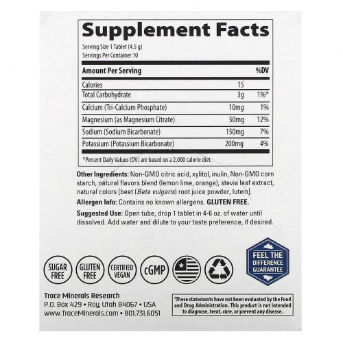 Описание товара Trace Minerals ®, TM Sport, Max-Hydrate Endurance, шипучие таблетки для пополнения электролитов, со вкусом цитрусовых, 8 туб, по 10 таблеток в каждой