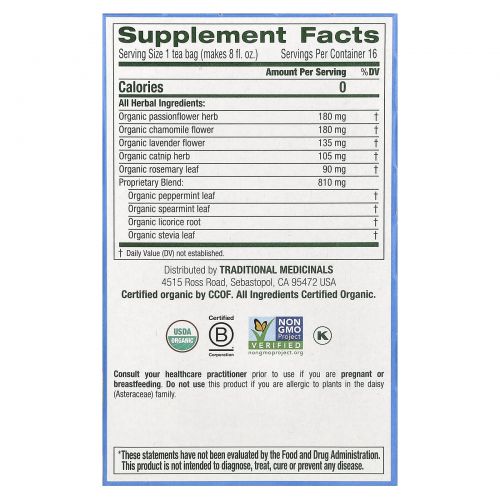 Описание товара Traditional Medicinals, Easy Now Органический Травяной Чай 16 чайных пакетиков, 0.85 унции (24 г)