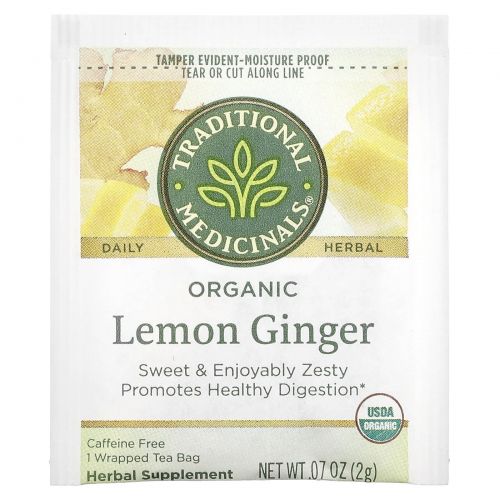 Описание товара Traditional Medicinals, Herbal Teas, органический лимонный имбирь, без кофеина, 16 чайных пакетиков, 32 г (1,13 унции)