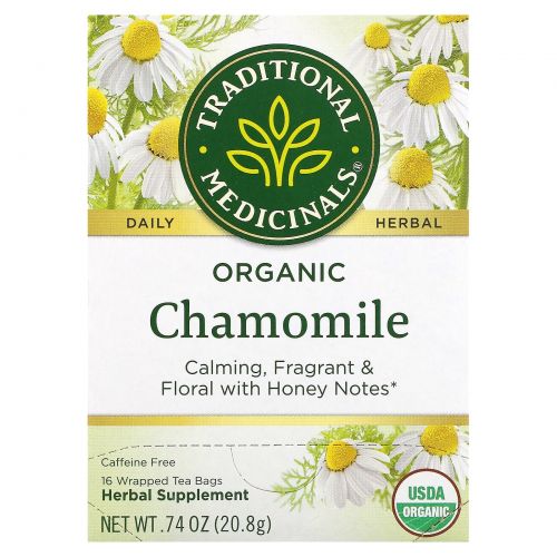 Traditional Medicinals, Травяной чай, органическая ромашка, без кофеина, 16 чайных пакетиков, 0,74 унции (20,8 г)