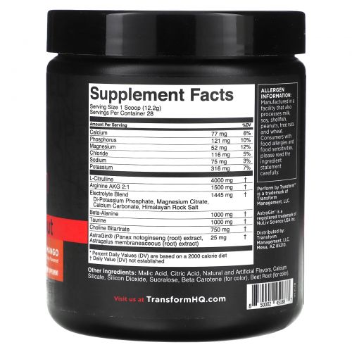 Описание товара TransformHQ, Perform, предтренировочный комплекс без стимуляторов, ананас и манго, 341 г (12 унций)