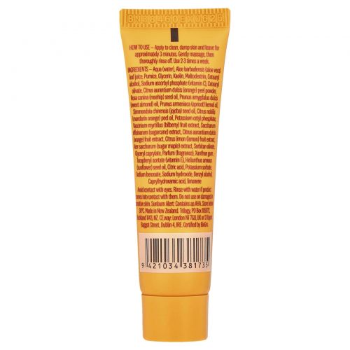 Другие ИнгредиентыВода (Aqua), сок листьев алоэ вера (Aloe barbadensis), пемза, глицерин, каолин, мальтодекстрин, цетеариловый спирт, аскорбил фосфат натрия (витамин С), цетеарил оливат, порошок из цедры апельсина (Citrus aurantium dulcis), масло из семян шиповника (Rosa canina), масло сладкого миндаля (Prunus amygdalus dulcis), масло из косточек абрикоса (Prunus armeniaca), масло из семян жожоба (Simmondsia chinensis), масло из цедры мандарина (Citrus nobilis), цетил фосфат калия, экстракт плодов черники (Vaccinium myrtillus), экстракт сахарного тростника (Saccharum officinarum), экстракт плодов апельсина (Citrus aurantium dulcis), экстракт плодов лимона (Citrus limon), экстракт сахарного клена (Acer saccharum), сорбитан оливат, глицерил каприлат, парфюмерная композиция (отдушка), ксантановая камедь, токоферилацетат (витамин Е), подсолнечное масло (Helianthus annuus), лимонная кислота, сорбат калия, бензоат натрия, гидроксид натрия, бензиловый спирт, каприлгидроксаминовая кислота, лимонен.