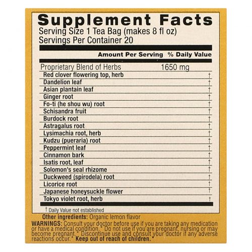 | Размер порции: 1 чайный пакетик [на 240 мл (8 жидк. унций)] | ||