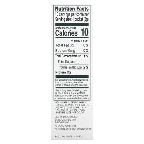 Описание товара True Citrus Company, Настоящий лайм, лаймад из черной вишни, 10 пакетиков, 1,06 унц. (30 г)