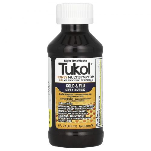 Tukol, мед, мультисимптомная добавка, от простуды и гриппа, для приема перед сном, для детей от 12 лет, натуральный мед, 118 мл (4 жидк. унции)