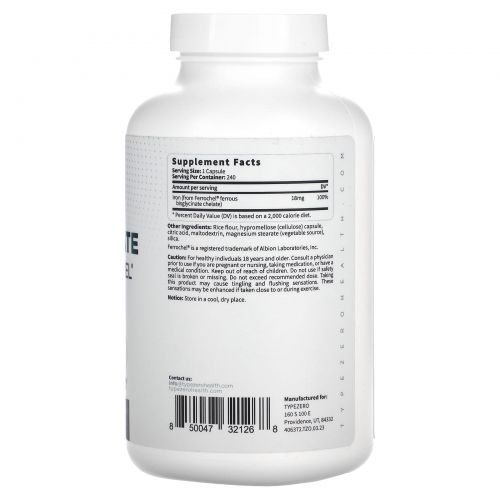 TypeZero, Clean, хелат железа, 18 мг, 240 капсул