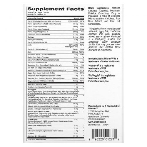 Описание товара Ultamins, Мультивитаминный комплекс для мужчин после 50 с CoQ10, грибами, ферментами, овощами и ягодами, 60 растительных капсул