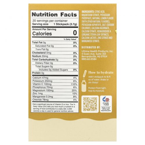 Описание товара Ultima Health Products, "Предельный восполнитель", порошок электролитов со вкусом лимонада, 20 пакетиков, 0,12 унций (3,5 г)