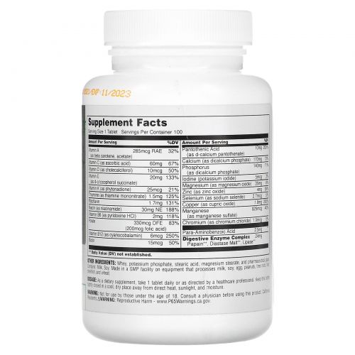 Производится на предприятии, имеющем регистрацию надлежащей производственной практики (GMP), где выполняется обработка молока, сои, яиц, арахиса, древесных орехов, рыбы, моллюсков, пшеницы.