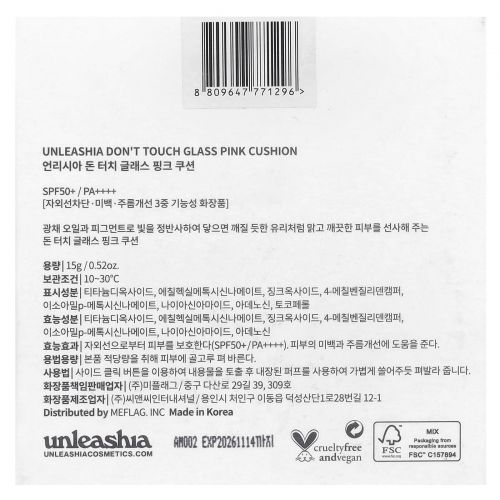 Описание товара Unleashia, Don't Touch Glass Pink Cushion, SPF50 + / PA ++++, 25 N Molten, 15 г (0,52 унции)