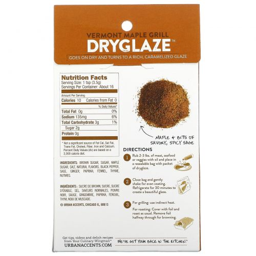 Описание товара Urban Accents, Dryglaze, Вермонтский клен для гриля, 57 г (2 унции)