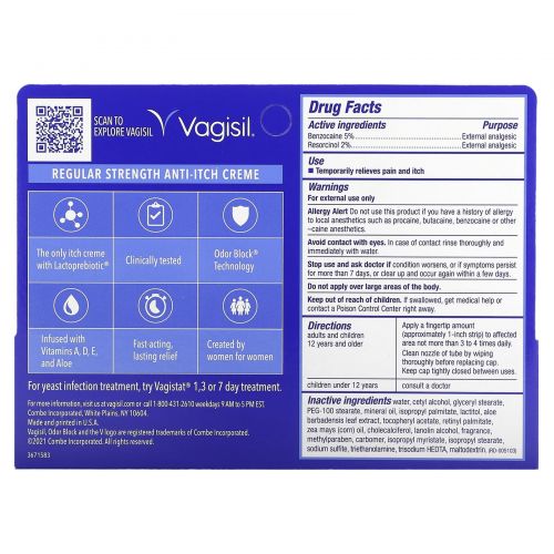 Описание товара Vagisil, крем против зуда, обычной силы действия, 28 г (1 унция)