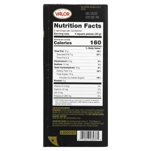 Описание товара Valor, Темный шоколад, 70% какао, апельсин, 3,5 унции (100 г)