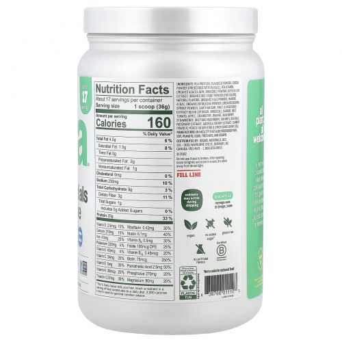 Описание товара Vega, Растительный коктейль Essentials, шоколад, 613 г (1 фунт 5,6 унции)