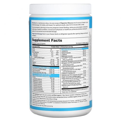 В качестве поддерживающей дозы смешайте одну мерную ложку средства Digestive Vibrance с 240 мл (8 унциями) воды или любимого напитка. Быстро перемешайте до полного смешивания. Для достижения оптимальных результатов принимайте через 30–45 минут после еды.