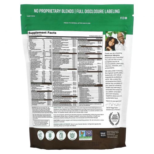Спасибо, что выбрали Maximum Vibrance, единственный в Америке продукт Futurefood™. Вы не найдете более полного источника микроэлементов, растительного белка, витаминов, минералов и антиоксидантов.