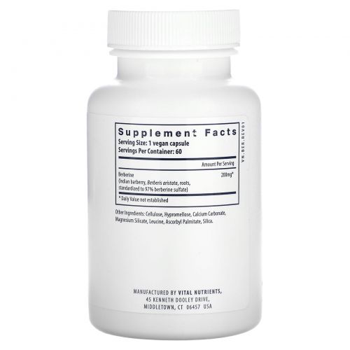 Описание товара Vital Nutrients, Берберин, 200 мг, 60 веганских капсул