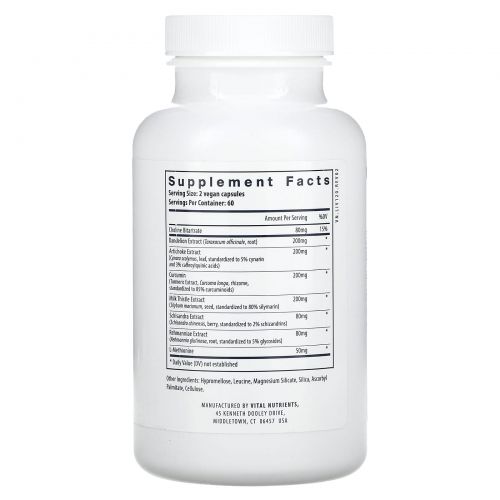 Описание товара Vital Nutrients, добавка для печени, 120 веганских капсул